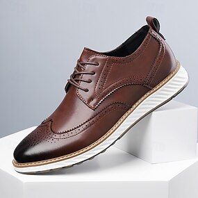 pánské hnědé šněrovací boty z umělé kůže s tkaným detailem, klasický formální styl, pohodlné na svatby a obchodní akce