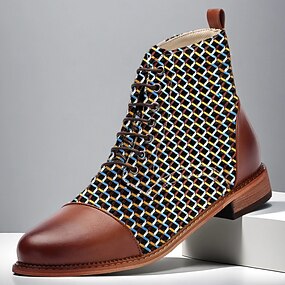 Pánské žakárové kotníkové boty s kostkovaným vzorem na šněrování – retro vintage styl pro kreativní outfity, večírky i každodenní nošení