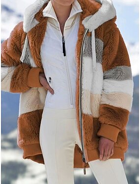 Dámské Šerpa bunda Pohodlné Prodyšné Slátanina Zip Na běžné nošení Barevné bloky Dovolená ulice Ležérní Denní nošení Zip Standardní Kapuce Běžný Dlouhý rukáv Svrchní oděvy Černá Rubínově červen