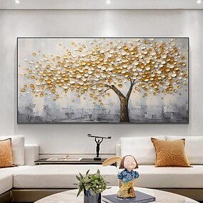 velký 3d zlatý strom plátno olejomalba ruční práce podzim příroda krajinomalba ruční nástěnné umění botanický nůž malba světlo luxus pro výzdobu obývacího pokoje