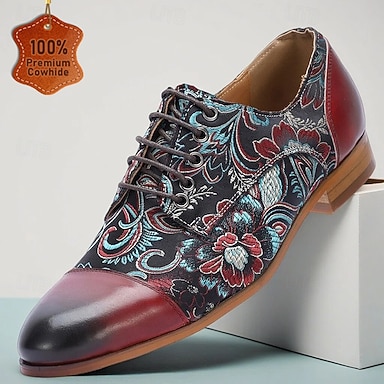 Pánské černé kožené boty na šněrování s květinovým vzorem - módní obuv pro poloformální setkání, večerní večírky a trendy ležérní nošení