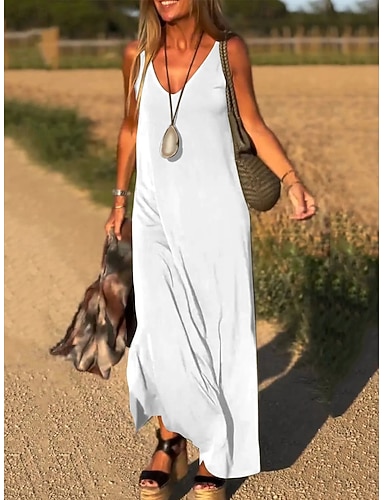 Dámské Maxi šaty Bílé šaty Slip Dress Elegantní Módní Moderní Venkovní Dovolená Jdeme ven Volný Bez vzoru Bez rukávů Do V Vodní modrá Černá Bílá Armádní zelená Léto Jaro
