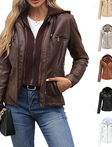 Dámské Mikina s kapucí Nepromokavé bundy a pláště do deště Zahřívací Pohodlné Šňůrky Zip Kapsy Na běžné nošení Bez vzoru Jdeme ven Víkend Zip Standardní Kapuce Běžný Dlouhý rukáv Svrchní oděvy Černá