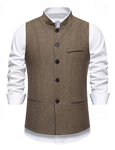 Pánské Tvídová vesta Vesta Formální Svatební Dovolená Obchod Punk Vinobraní Jaro Podzim Kapsy Knoflíky Polyester Pohodlné Smrčkový steh Jednořadé Do V Slim Černá Fialová Námořnická modř Hnědá Vesta