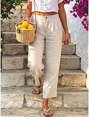 Dámské Capri kalhoty Plátěné kalhoty Kalhoty Kalhoty pro volný čas prázdniny Módní Základní Telecí délka Středně vysoký pas Bez vzoru Kapsy Straight-Leg Lehká váha Pohodlné Prodyšné Neelastické Denn