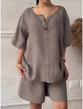 Dámské Košile Dvoudílné sady Imitace bavlny a lnu Pytlovité šortky Krátký rukáv Tričkový Pevná barva Slátanina Módní Šik ven Ležérní Denní Práce Rubínově červená Námořnická modř Khaki Jaro Volný