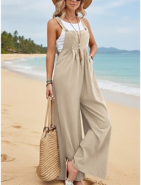 Womenské lněné jako faux bavlněné lněné romper aktivní jednobarevné bez rukávů široké nohavice každodenní plážové volný střih černá růžová armádně zelená léto