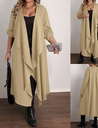 Dámské Trenčkot Zahřívací Pohodlné Kapsy Nepravidelný lem Na běžné nošení Bez vzoru Dovolená Denní nošení Jdeme ven Víkend Dlouhé Přehnutý Volný Dlouhý rukáv Svrchní oděvy Khaki Podzim Zima