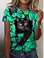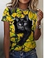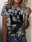 Dámské Tričko Tisk Grafika Zvíře Kočka stylové Klasické Na běžné nošení Krátký rukáv Tričkový Kulatý Dlouhé topy Denní Bílá Hnědá Léto Jaro