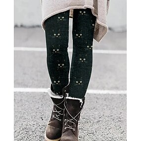 Dámské Kalhoty Legíny Pohodlné legíny prázdniny Vinobraní Šik ven Plná délka Přírodní Grafika Kočka Elastický pas Tisk Pohodlný Venkovní Pohodlné Elastické Venkovní Streetwear Dovolená Tmavě šed