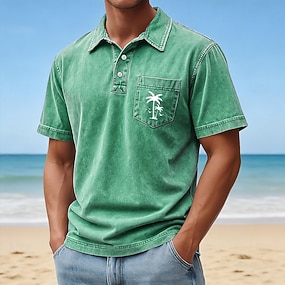 Pánské Palma Kyselé mycí tričko 100% Bawełna Krátký rukáv Polo tričko Klopa Havajské Na běžné nošení Oblečení na atletiku Oblečení na dovolenou Kapsy 3D tisk Knoflíky Jaro léto Vodní modrá Rubínov
