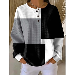 Dámské Tričko Tričko Top Knoflíky Bez vzoru Elegantní Módní Klasické Dlouhý rukáv Do V Běžné topy Denní Jdeme ven Víkend Černá Bílá Světlá růžová Námořnická modř Šedá Jaro Podzim