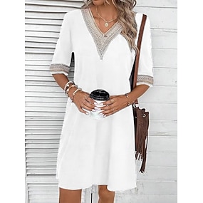 Dámské Šaty ke kolenům Bílé šaty Módní Moderní Venkovní Dovolená Jdeme ven Volný Bez vzoru Poloviční rukáv Do V Vodní modrá Černá Bílá Oranžová Léto Jaro