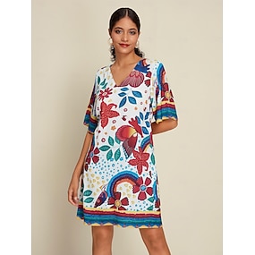 Dámské Šaty s potiskem Mini šaty Bílá Poloviční rukáv Květiny Květinový styl Potisk Léto Do V Šaty XS S M