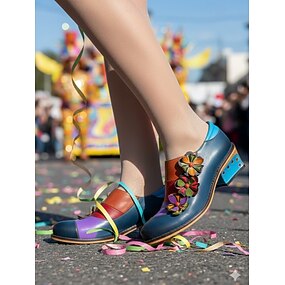 dámské Mardi Gras vintage vyšívané květinové Mary Jane podpatky - perfektní pro karneval slavnostní průvody a oslavy