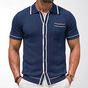 Pánské Košile Žebrovaný pletený Struktura Košile pro volný čas Košile na knoflíky Světlá růžová Námořnická modř Trávová zelená Krátký rukáv Bez vzoru Proužky Košilový límec Ležérní Denní Přední kapsa