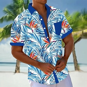 Pánské S lístky Tropické rostliny Havajská košile Košile na knoflíky Aloha košile Krátký rukáv Havajské Ležérní Dovolená Léto Jaro Přehnutý 3D tisk košile s límečkem Jedna přední kapsa Vodní modr
