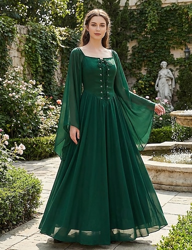 Středověké Renesanční ozdobný Po kotníky Šaty Dlouhé rukávy Víla Korzet Pevná barva Maškarní kostým Dámské Fantazie předvečer Všech svatých Karneval Plesová maškaráda Renesanční jarmark Retro