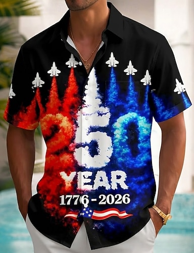 Pánské 4. července 250. výročí USA Proudový stíhač Vlajka USA Košile Letní košile Košile na knoflíky Krátký rukáv Vlastenec Venkovní Dovolená Léto Jaro Přehnutý 3D tisk košile s límečkem Jedna předn
