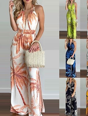 Dámské Běžný Kombinéza Šik ven Květinový Bez rukávů Krk ohlávky Rozparek Tisk ulice Denní Běžný Černá Žlutá Vodní modrá Léto