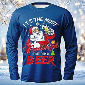 Vánoce Pánské Ježíšek Legrační slang Tričko Dlouhý rukáv tričko 3D tisk Tričkový Košile Módní Základní 3D ulice Ležérní Denní Vodní modrá Černá Rubínově červená Léto Jaro Oblečení S M L XL XXL XXXL