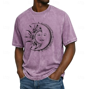 pánské nebeské slunce a měsíc tváře propletené dekorativní filigránové kyselinové mytí vintage streetwear tričko s potiskem krátký rukáv standardní střih ležérní denní nošení značkové oblečení