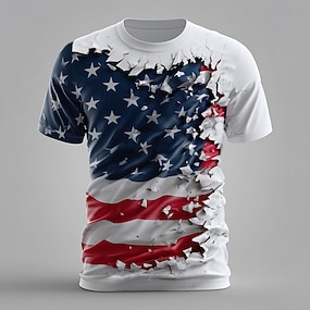 4. července 2026 250. Den památky Pánské tričko s 3D potiskem americké vlajky crew neck krátký rukáv každodenní ulice