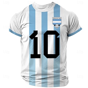 Pánské Argentina Fotbal Tričko Krátký rukáv tričko 3D tisk Tričkový Košile Venkovní Oblečení na atletiku Bílá Léto Jaro Oblečení S M L XL XXL XXXL