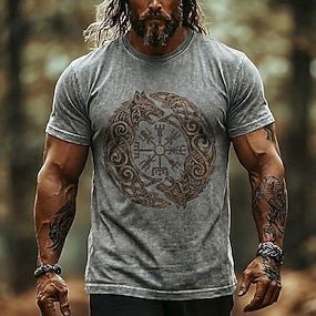 Vikingské vegvisirské kompasové vlčí tričko pánské seprané bavlněné tričko s potiskem severských run vintage mytologie top oblečení velikosti S M L XL XXL XXXL