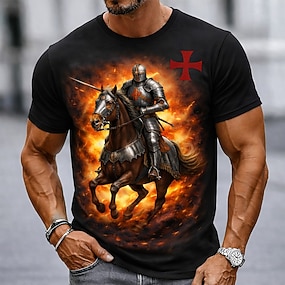 Pánské tričko s potiskem, rytíř templářů, červený kříž, meč, štít, křižák, středověké, křesťanské, vintage, hrdinské, s krátkým rukávem, celoplošný potisk, ležérní střih, streetwear, denní nošení,