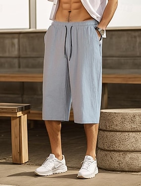 Pánské Capri kalhoty Lněné šortky Letní šortky Plážové šortky Harémové kalhoty Kapsy Šňůrky Elastický pas Bez vzoru Pohodlné Prodyšné Telecí délka Dovolená Plážové Havajské Cikánský Černá Bílá