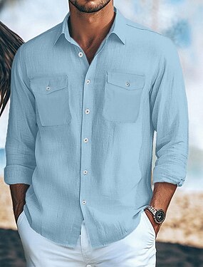 Pánské Košile Lněná košile Letní košile Plážová košile Pevná barva Dovolená Denní nošení Bílá Trávová zelená Světle modrá Dlouhý rukáv Klopa Léto Jaro Oblečení Přední kapsa