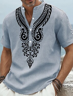 Pánské Geleneksel Košile Lněná košile Tričko Henley Krátký rukáv Vinobraní Na běžné nošení Denní Dovolená Léto Jaro Stojáčkový límec Tisk Vodní modrá Trávová zelená Khaki