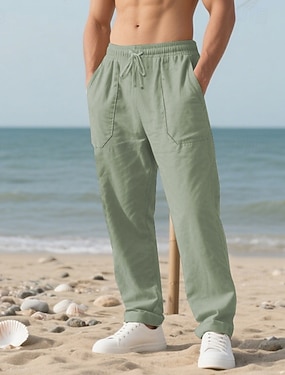Pánské Plátěné kalhoty Kalhoty Letní kalhoty Volné kalhoty Plážové kalhoty Šňůrky Elastický pas Pevná barva Lehká váha Prodyšné Plná délka Denní Venkovní Plážové prázdniny Módní Trávová zelená Khaki
