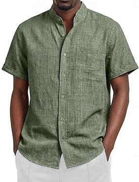 Pánské Košile Lněná košile Košile na knoflíky Bez vzoru Ležérní Dovolená Černá Bílá Trávová zelená Khaki Krátký rukáv Košilový límec Léto Jaro Oblečení Slátanina