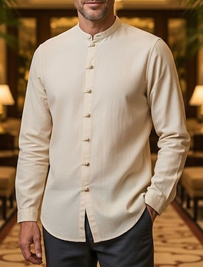 Muži Košile Lněná košile Čínská košile s límečkem Košile s mandarinkovým límečkem Košile pro volný čas Košile na knoflíky Bez vzoru Ležérní Denní Černá Bílá Světlá růžová Fialová Dlouhý rukáv límec