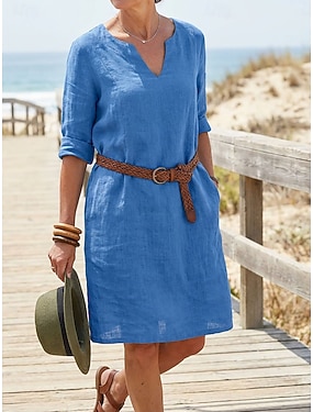Dámské Šaty ke kolenům Bavlněné lněné šaty Úpletové šaty Volnočasové šaty Elegantní Módní Moderní Denní Venkovní Dovolená Volný Bez vzoru 3/4 délka rukávu Tričkový Vodní modrá Světlá růžová Oranžov