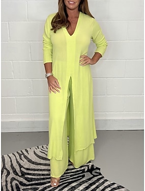 Dámské Dvoudílné sady Sady kalhot Dlouhý rukáv Do V Bez vzoru Módní Šik ven Ležérní Denní Venkovní Vodní modrá Černá Bílá Léto Běžný