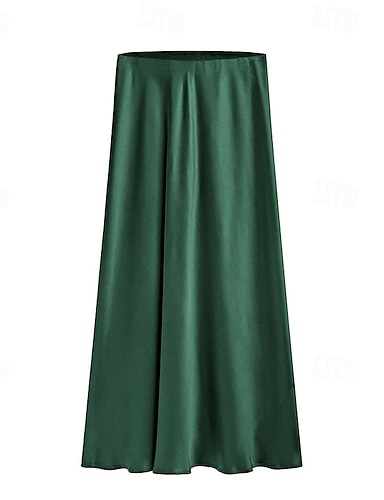 Dámské Saténové sukně Módní Na běžné nošení Délka ke kolenům Vysoký pas Sukně Bez vzoru Lehce elastické Denní ulice Černá Šampaňská Zlatá Zelená Léto Satén Polyester