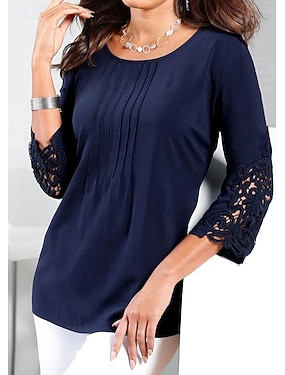 Dámské Šifonové topy Květinový Elegantní stylové Základní 3/4 délka rukávu Tričkový Běžné topy Krajka Výšivka Meruňková Léto