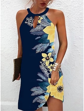 Dámské Letní šaty Šaty s ohlávkou ke krku Šaty s potiskem Aktivní Módní Šik ven Venkovní Dovolená Denní Běžný Kašmírový vzor Bez rukávů Krk ohlávky Žlutá Královská modř Vodní modrá Tmavomodrá Léto