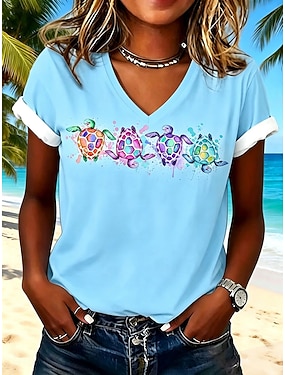Dámské Tričko Tisk Grafika Mořská želva Vinobraní stylové Klasické Krátký rukáv Do V Běžné topy Ležérní Denní Jdeme ven Vodní modrá Bílá Světlá růžová Fialová Trávová zelená Léto Jaro