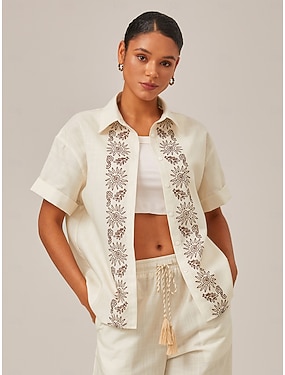 Dámské Žena Košile s knoflíkem Košile pro volný čas Strom Proužky Ležérní Trička Vodní modrá Výšivka Knoflíky Krátký rukáv Elegantní prázdniny Na běžné nošení Košilový límec Léto