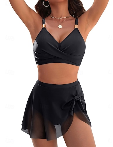 Dámské Plavky Bikiny 2 ks Sukně Plavky Štíhlý Volná záda prázdniny Oblečení na pláž Pevná barva Do V Bez rukávů Plavky