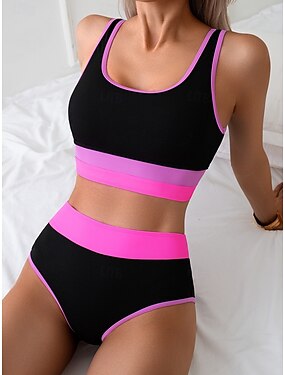 Dámské Plavky Bikiny 2 ks Slipy Plavky Štíhlý Volná záda prázdniny Oblečení na pláž Barevné bloky Krk ohlávky Bez rukávů Plavky