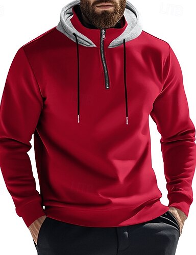 Pánské Kapuce Mikina se zipem na čtvrtletí Meruňková Černá Bílá Fialová Rubínově červená Kapuce Bez vzoru Šňůrky Sporty a outdoor Denní Dovolená Polyester Šik ven Základní Na běžné nošení Jaro