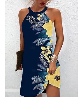Dámské Letní šaty Šaty s ohlávkou ke krku Šaty s potiskem Aktivní Módní Šik ven Venkovní Dovolená Denní Běžný Kašmírový vzor Bez rukávů Krk ohlávky Žlutá Královská modř Vodní modrá Tmavomodrá Léto