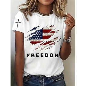 Tričko pro Den nezávislosti Patriotické Ženské T Tričko Grafická Vlajka Vintage Stylové Klasické Krátké Rukávy Hrdlo Crew Tradiční Top Každodenní víkendový potisk Černá Bílá Léto Jaro