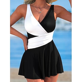Dámské Plavky Jeden kus Sukně Plavky Úplet Elegantní prázdniny Grafika Geometrický Do V Bez rukávů Plavky