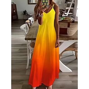 Dámské Maxi šaty Letní šaty Áčkové šaty Slip Dress prázdniny Na běžné nošení Cikánský Plážové Volný Tónované Grafika Bez rukávů Do V Vodní modrá Oranžová Ametyst Léto Jaro